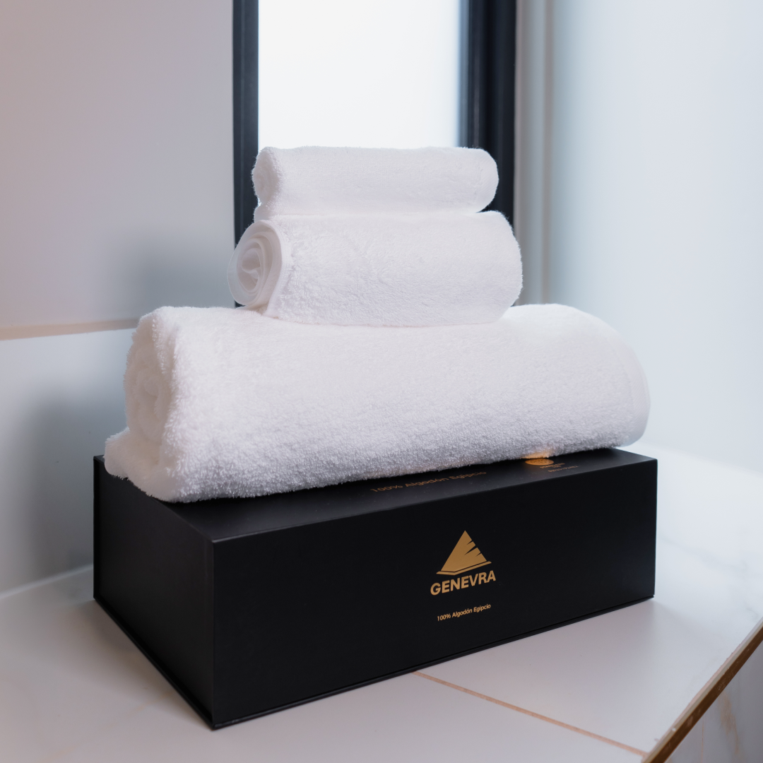Set de toallas Descubre nuestras toallas de lujo, una selección exclusiva confeccionada con algodón egipcio de fibra larga y alta densidad, que combina tecnología avanzada y un diseño elegante para brindarte una experiencia de baño incomparable.